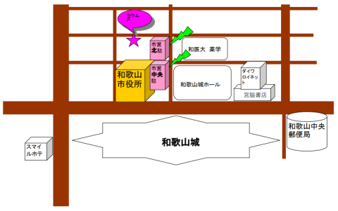 和歌山バス「市役所前」停留所から、北へ徒歩3分
